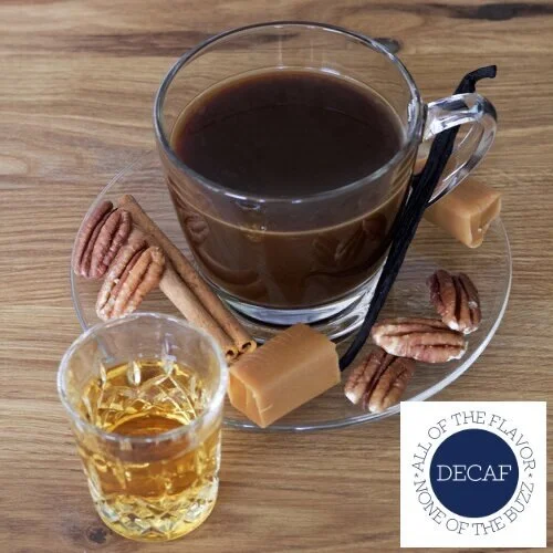 Caramel, rum and pecan with a dash of cinnamon and vanilla. We start with a sweet, gentle, decaffeinated coffee, then add your flavor. A sweet and spicy break from the ordinary.